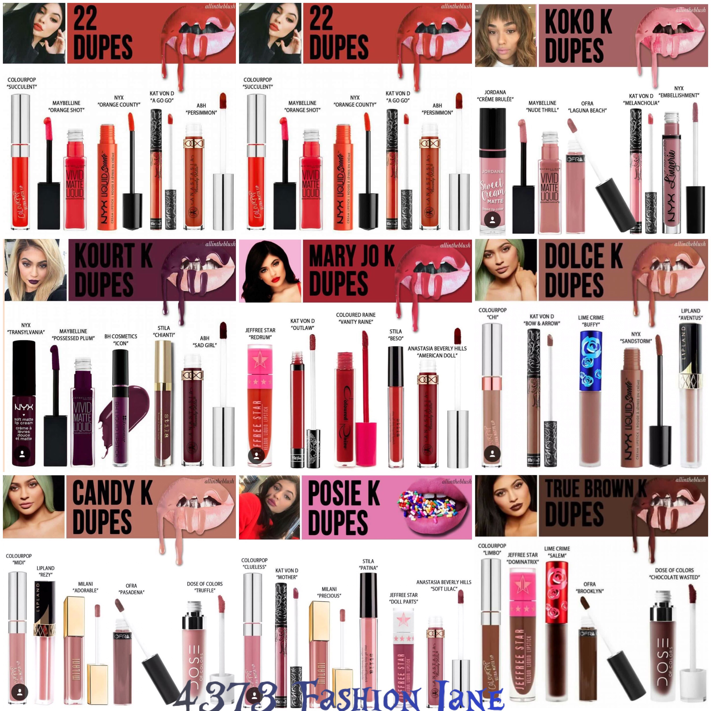 Here are all of the DUPES FOR THE KYLIE LIPKITS.