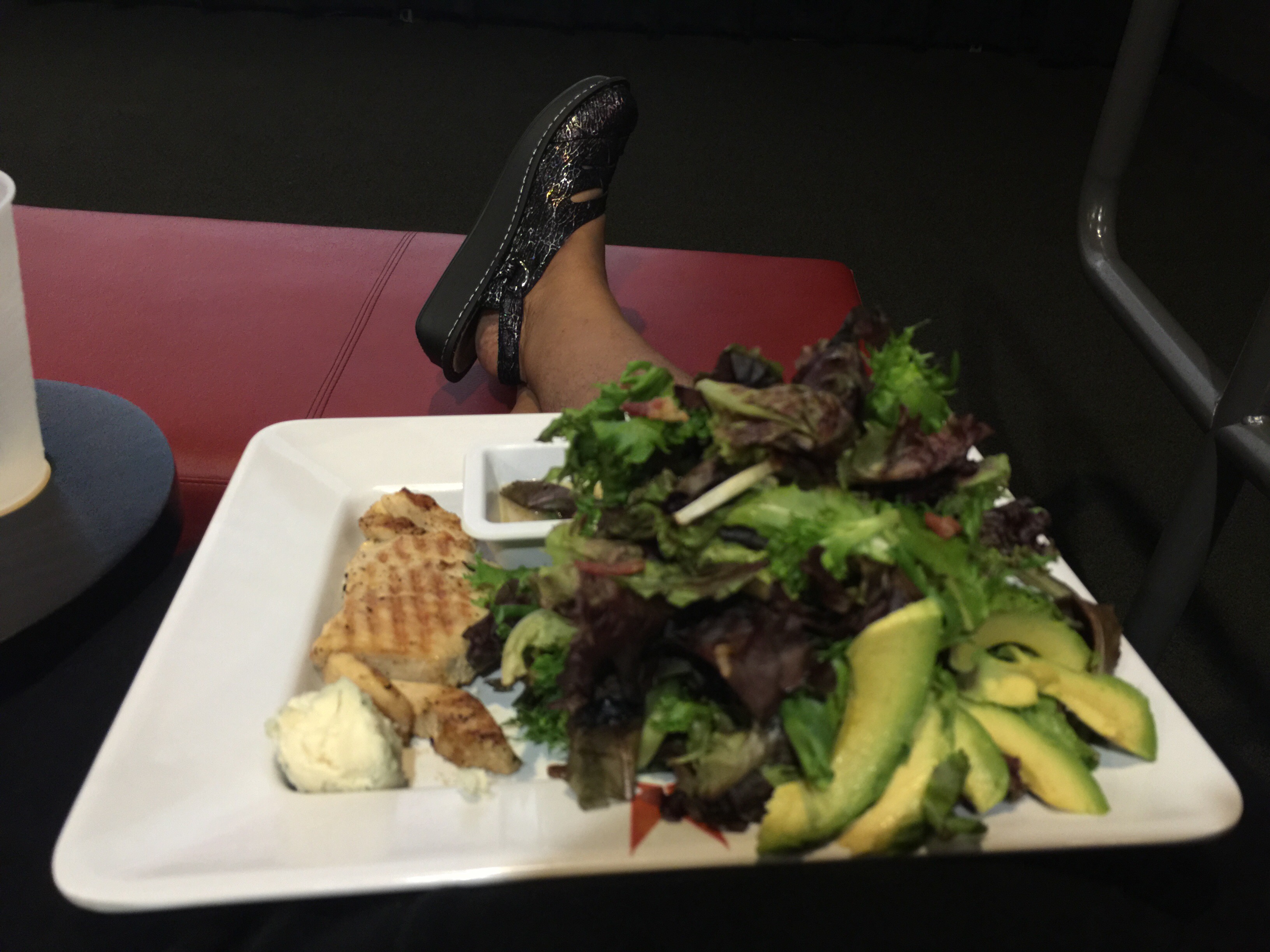 Tonight, I managed to get out of bed and pushed myself to get out the house. I went to Canal Place and watched the movie, The Free State of Jones (I did a review of it). Anyway, this was my meal of choice: grill chicken cobb salad with egg, avocado & blue cheese. It was delicious. I have also managed to loose 8lbs. My doctor will definitely appreciate that.