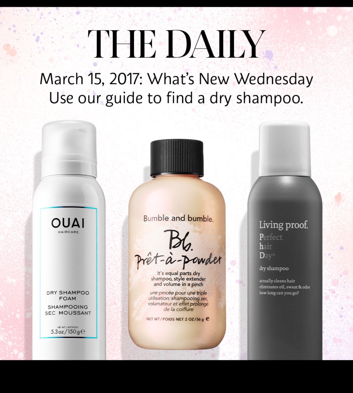 • It’s always nice to try new things. Today Sephora has declared their what’s new Wednesday, with a devotion to shampoo. Check out the shampoos on their site and see which one you like. 🌺