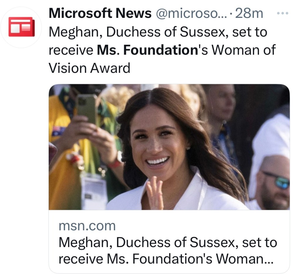 Congratulations Duchess Meghan on your award this week from the Ms. Foundation